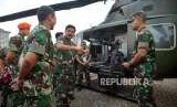 Panglima TNI Marsekal Hadi Tjahjanto (kanan) melihat kendaraan yang dipamerkan usai peresmian pameran Alat Utama Sistem Senjata (Alutsista) di Monas, Jakarta, Kamis (27/9). (FOTO : Republika/Putra M. Akbar)