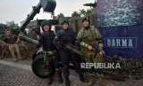 Sejumlah pasukan TNI perempua berpose pada pameran Alat Utama Sistem Senjata (Alutsista) di Monas, Jakarta, Kamis (27/9). (FOTO : Republika/Putra M. Akbar)