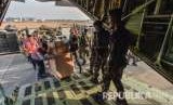 Prajurit TNI memasukan logistik kedalam pesawat untuk tugas misi kemanusian gempa Palu, Sulawesi Tengah di Base Ops Pangkalan Udara Militer Halim Perdana Kusuma, Jakarta, Sabtu (29/9). (FOTO : Antara/Muhammad Adimaja)