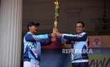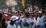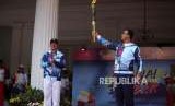 REPUBLIKA.CO.ID, JAKARTA -- Gubernur DKI Jakarta Anies Baswedan melakukan estafet api obor Asian Para Games 2018 kepada Atlet difabel saat pawai obor (torch relay) di Balaikota, Jakarta, Ahad (30/9).