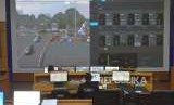Petugas Traffic Management Center (TMC) menunjukan pelanggaran lalu lintas melalui layar CCTV di ruas jalan Thamrin-Sudirman di ruang kontrol Ditlantas Polda Metro Jaya, Senin (1/10). (FOTO : Republika/Iman Firmansyah)