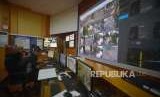 Petugas Traffic Management Center (TMC) memantau pelanggar lalu lintas melalui layar CCTV di ruas jalan Thamrin-Sudirman di ruang kontrol Ditlantas Polda Metro Jaya, Senin (1/10). (FOTO : Republika/Iman Firmansyah)