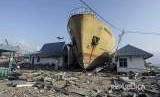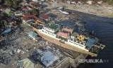 REPUBLIKA.CO.ID, DONGGALA -- Sebuah kapal dengan bobot 2000 Gross Ton terbawa arus tsunami hingga 70 meter ke daratan dermaga Pelabuhan Wani. Kapal KM Sabuk Nusantara 39 diawaki ada 20 orang ABK.