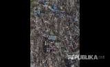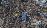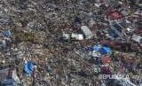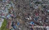 Foto udara rumah-rumah warga yang hancur akibat gempa 7,4 pada skala richter (SR) di Perumnas Balaroa, Palu, Sulawesi Tengah, Senin (1/10). (FOTO : Hafidz Mubarak/Antara)