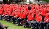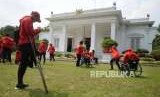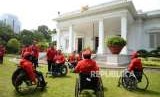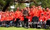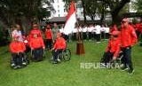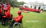 REPUBLIKA.CO.ID, JAKARTA -- Atlet Asian Para Games berfoto usai upacara pelepasan kontingen Indonesia untuk Para Games ke-3 2018 di halaman Istana Merdeka, Jakarta, Selasa (2/10).