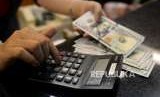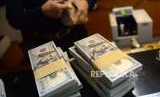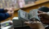 Petugas menghitung uang pecahan dolar Amerika Serikat di gerai penukaran mata uang asing di Jakarta, Selasa (2/10). (FOTO : Republika/Prayogi)