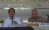 Ditreskrimum Polda Metro Jaya, Nicko Hafinta (kiri) memberikan keterangan kepada media terkait pemberitaan penganiyaan aktivis kemanusiaan Ratna Sarumpaet di Polda Metro Jaya, Jakarta, Rabu (3/10). (FOTO : Republika/Iman Firmansyah)
