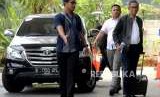 REPUBLIKA.CO.ID, JAKARTA -- Kepala KPP Pratama Ambon La Masikamba (kedua kiri), yang diamankan oleh KPK dalam operasi tangkap tangan (OTT) di Ambon, tiba untuk menjalani pemeriksaan di Gedung KPK, Jakarta, Kamis (4/10).