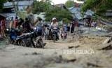 REPUBLIKA.CO.ID, SIGI -- Kondisi jalanan yang rusak di Desa Jono Oge, Sigi, Sulawesi Tengah, Kamis 4/10). Bencana gempa bumi 7,4 skala Richter dan tsunami yang terjadi pada Jumat (28/9) tersebut membuat sejumlah infrastruktur di Kota Palu mengalami kerusakan.