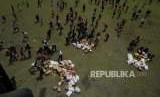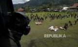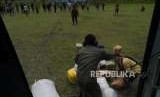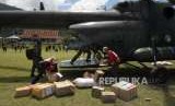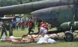 Bantuan Untuk Daerah Terisolir : Petugas TNI AD bersama PMI menurunkan bantuan untuk korban gempa yang diangkut menggunakan helikopter TNI AD MI 17 di Desa Bolapapu, Kolawi, Kabupaten Sigi, Sulawesi Tengah, Senin (8/10). (FOTO : Republika/Edwin Dwi Putranto)
