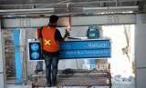 Pekerja menyelesaikan pembangunan Stasiun Cakung akan di Modernisasi, Jakarta, Selasa (9/10). (FOTO : Republika/Mahmud Muhyidin)