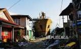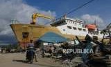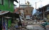 REPUBLIKA.CO.ID, DONGGALA -- Kapal Sabuk Nusantara 39 masih terlihat terdampar di Pelabuhan Wani II, Kabupaten Donggala, Selasa (9/10). Perahu ini terhempas ke daratan akibat terbawa gelombang tsunami.