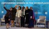 Diskusi Pemberdayaan Perempuan. Menkeu Sri Mulyani (ketiga kiri), Direktur Pelaksana International Monetary Fund (IMF) Christine Lagarde (kedua kiri) bersama nara sumber berswa foto usai diskusi Pemberdayaan Wanita di Dunia Kerja pada rangkaian Pertemuan Tahunan IMF World Bank Group 2018 di Bali International Convention Center (BICC), Nusa Dua, Bali, Selasa (9/10). (FOTO : Wihdan Hidayat/Republika)