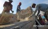 Pekerja mengangkut sak semen untuk dimuat kedalam kapal di Pelabuhan Kalimas, Surabaya, Jawa Timur, Selasa (9/10). Sepanjang Januari-Agustus 2018 PT Semen Indonesia telah mencatatkan penjualan ekspor sebesar 1,99 juta ton, tumbuh 42,7 persen dibanding periode yang sama tahun lalu yang sebesar 1,39 juta ton. (FOTO : Didik Suhartono/Antara)