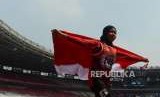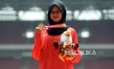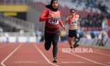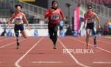 REPUBLIKA.CO.ID, JAKARTA -- Atlet lari Indonesia Karisma Evi Tiarani berhasil meraih medali emas pada babak final para atletik nomor lari 100 meter putri T42,T63 Asian Para Games 2018 di Stadion Utama Gelora Bung Karno, Jakarta, Rabu (10/10).