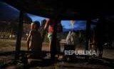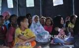 Sejumlah anak berada di posko pengungsi korban gempa dan tsunami di Masjid Agung Darussalam kota Palu, Sulawesi Tengah, Rabu (10/10). (FOTO : Republika/Edwin Dwi Putranto)