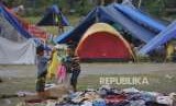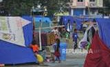 REPUBLIKA.CO.ID, PALU -- Sejumlah anak berada di posko pengungsi korban gempa dan tsunami di Masjid Agung Darussalam kota Palu, Sulawesi Tengah, Rabu (10/10).