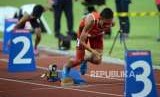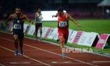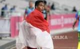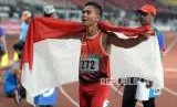 REPUBLIKA.CO.ID, JAKARTA -- Atlet lari Indonesia Nur Ferry Pradana berhasil meraih medali perak dengan catatan waktu 49.86 detik pada pertandingan babak final nomor 400 meter putra T45/46/47 Asian Para Games 2018 di Stadion Utama Gelora Bung Karno, Jakarta, Kamis (11/10).
