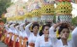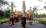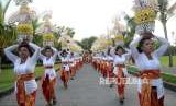 Parade Budaya Bali. Peserta menggunakan pakaian adat Bali saat karnaval di Nusa Dua, Bali, Jumat (12/10). (FOTO : Republika/ Wihdan)