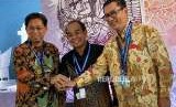 Direktur Utama Bank Mega Kostaman Thayib (kiri), Direktur Utama Hutama Karya Bintang Perbowo (tengah) dan Direktur Kredit Bank Mega Madi Darmadi Lazuardi (kanan) usai penandatanganan kerjasama kredit kedua pihak di Bali, Kamis (11/10). PT Bank Mega, Tbk memberikan fasilitas kredit kepada PT. Hutama Karya (Persero) sebesar Rp. 12,3 triliun yang akan diperuntukkan membangun Jalan Tol Trans Sumatera Ruas Pekanbaru - Dumai sepanjang 131 km. (FOTO : Dok Bank Mega)