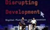 Presiden Bank Dunia Yong Kim (kiri) bersama pendiri Alibaba Group Jack Ma menjadi nara sumber saat diskusi di sela Pertemuan Tahunan IMF - Bank Dunia 2018 di Nusa Dua, Bali, Jumat (12/10). Pada diskusi ini membahas terkait perkembangan, inovasi, dan hambatan digital ekonomi. (FOTO : Wihdan Hidayat/Republika)