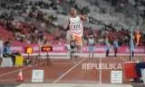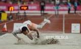 REPUBLIKA.CO.ID, JAKARTA -- Atlet Lompat Jauh Indonesia Rasyidi menyumbangkan medali perunggu pada ajang Asian Para Games 2018, Jumat (12/10) di Jakarta. Medali diperoleh pada babak final para atletik nomor lompat jauh putra T44/T62/T64. Lompatan Rasyidi berhasil berada di peringkat tiga dengan lompatan sejauh 6.05 meter.