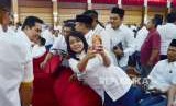 Peserta tim kampanye berswafoto dengan Ketua Tim Kampanye Nasional (TKN) Koalisi Indonesia Kerja Joko Widodo-Ma'ruf Amin, Erick Thohir (kiri) pada acara PengukuhanTim Kampanye Daerah dan Konsolidasi Pemenangan Pilpres 2019, di Hotel Asrilia, Kota Bandung, Ahad (14/10). (FOTO : Republika/Edi Yusuf)