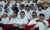 Ketua Tim Kampanye Nasional (TKN) Koalisi Indonesia Kerja Joko Widodo-Ma'ruf Amin, Erick Thohir (tengah) tengah hadir pada PengukuhanTim Kampanye Daerah dan Konsolidasi Pemenangan Pilpres 2019 di Hotel Asrilia, Kota Bandung, Ahad (14/10). (FOTO : Republika/Edi Yusuf)