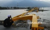 REPUBLIKA.CO.ID, PALU -- Sejumlah warga memperhatikan kondisi jembatan Ponulele yang ambruk di pantai Talise, Palu Sulawesi Tengah, Selasa (16/10).