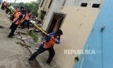 REPUBLIKA.CO.ID, JAKARTA -- Petugas merobohkan bangunan liar yang berdiri di sepanjang jalur kereta antara Stasiun Pasar Minggu dan Pasar Minggu Baru, Jakarta, Rabu (17/10).