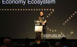 Kepala Badan Ekonomi Kreatif (BEKRAF) Indonesia Triawan Munaf memberikan paparannya saat acara BEKRAF Outlook Conference 2019 di Jakarta, Rabu (17/10). (FOTO : Republika/Edwin Dwi Putranto)