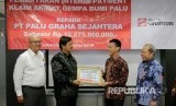 Direktur Asuransi Sinar Mas Marten P Lalamentik (kedua kiri) didampingi Direktur Asuransi Sinar Mas I Ketut Pasek Swastika (kiri) memberikan klaim kepada Direktur PT. Palu Graha Sejahtera Trisna Ignatius (kedua kanan) di Jakarta 17/10/2018.Asuransi Sinar Mas membayar interim payment sebesar Rp. 10,275 Milyar kepada PT. Palu Graha Sejahtera sebagai tindakan proaktif kepada nasabah. (FOTO : Dok Sinarmas )