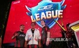 Vice President Brand and Communication Telkomsel Nirwan Lesmana (kiri), Deputi Bidang Pembudayaan Olahraga Kemenpora RI DR. Raden Isnanta (tengah), dan Head of Digital Lifestyle Telkomsel Crispin P Tristram (kanan) meresmikan peluncuran Liga eSport yang digelar oleh Dunia Games Telkomsel di Jakarta (17/10). Liga eSport ini dapat diikuti oleh seluruh gamer di Indonesia dengan total hadiah yang disediakan mencepai Rp 3 miliar (FOTO : Yogi Ardhi /Republika)