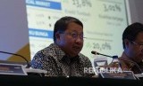 Wakil Direktur Utama Bank Mandiri Sulaiman Arif Arianto membacakan kinerja perusahaan pada paparan publik di di Jakarta, Rabu (17/10). Pada triwulan III-2018, pada bulan September Bank Mandiri membukukan laba bersih yang tumbuh 20% year on year menjadi Rp 18,1 triliun. (FOTO : Yogi Ardhi/Republika)