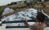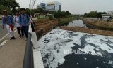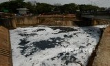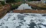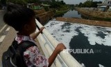 REPUBLIKA.CO.ID, JAKARTA -- Seorang anak mengamati busa yang mengaliri sungai Kanal Banjir Timur (KBT) di Cipinang, Jakarta Timur, Kamis (18/10).