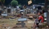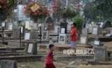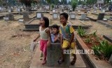 REPUBLIKA.CO.ID, JAKARTA -- Anak-anak bermain di kawasan pemakaman Menteng Pulo, Tebet, Jakarta Selatan, Kamis (18/10).