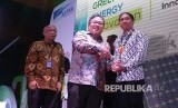 Menteri Perencanaan & Pembangunan Nasional RI Bambang Brodjonegoro (tengah) didampingi Chief of Corporate Communications, Social Responsibility & Security PT Astra International Tbk Pongki Pamungkas (kiri) memberi selamat kepada salah satu pemenang Astra Green Energy Innovation dari Grup Astra pada acara 3rd Astra Green Energy Summit 2018 di Jakarta (18/10). (FOTO : Dok Astra)