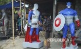 Pekerja menyelesaikan pembuatan patung action figure karakter superhero di Studio Patung Solo, Grogol, Sukoharjo, Jawa Tengah, Kamis (18/10/2018). Patung berbahan fiberglass tersebut dijual Rp18 juta per patung dan banyak dipesan untuk ikon pusat bisnis dan perbelanjaan serta tempat wisata. (FOTO : Maulana Surya/Antara)