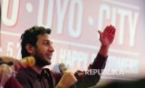 Pendiri dan CEO OYO Hotels Ritesh Agarwal, menjelaskan seputar kehadiran jaringan hotel OYO Indonesia di Jakarta, Kamis (18/10). OYO merupakan menjadi pemimpin pasar jaringan hotel budget di India, China, Malaysia dan Nepal kini mulai beroperasi di Jakarta, Palembang dan Surabaya. (FOTO : Yogi Ardhi/Republika)