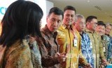 Wakil Direktur Utama BNI Herry Sidharta (kedua kiri) berbincang dengan jajaran direksi pada Paparan Kinerja Kuartal III Tahun 2018 di Jakarta, Kamis (18/10). BNI mencetak laba Rp 11,4 Triliun pada Kuartal III Tahun 2018. Hal tersebut didorong oleh pertumbuhan kredit sebesar 15,6%. (FOTO : Tahta Aidilla/Republika)