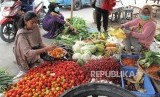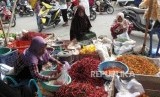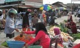 REPUBLIKA.CO.ID, PALU -- Pembeli melakukan transaksi dengan pedagang di pasar Inpres Palu, Sulawesi Tengah, Sabtu (20/10).