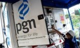 Petugas melakukan pengisian BBG ke kendaraan umum di Mobile Refueling Unit (MRU) milik PT Perusahaan Gas Negara (PGN) di Kawasan Monas, Jakarta, Ahad (21/10). (FOTO : Republika/Prayogi)