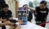 Mandiri Karnaval. Pengunjung sedang melihat desain emoney di arena Mandiri Karnaval HUT 20 Bank Mandiri di Jakarta, Sabtu (20/10). (FOTO : Tahta Aidilla/Republika)
