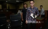 Terdakwa kasus suap dan gratifikasi terkait proyek-proyek di Dinas Pekerjaan Umum dan Perumahan Rakyat (PUPR) Provinsi Jambi, Zumi Zola berjalan usai menjalani sidang dengan yang beragendakan konfortir dan pemeriksaan terdakwa di Pengadilan Tindak Pidana Korupsi (Tipikor), Jakarta, Senin (22/10). (FOTO : Republika/Iman Firmansyah)