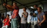 Petugas mempersiapkan sasaran saat uji balistik senjata api Glock 17 di lapangan tembak Mako Brimob, Kelapa Dua, Depok, Jawa Barat, Selasa (23/10). (FOTO : Republika/Putra M. Akbar)