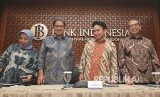 Deputi Gubernur Senior Bank Indonesia (BI) Mirza Adityaswara (kedua kanan) didampingi Deputi Gubernur BI Sugeng (kanan), Erwin Rijanto (kedua kiri) dan Rosmaya Hadi (kiri) bersiap menyampaikan keterangan pers di gedung BI, Jakarta, Selasa (23/10) (FOTO : Dhemas Riyanto/Antara)