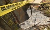 Puing kendaraan dinas yang dibakar oleh massa di Mapolsek Bendahara, Aceh Tamiang, Aceh, Rabu (24/10/2018). (FOTO : Antara/Zamzami)