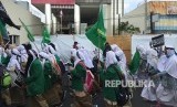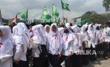 Ribuan santri dari berbagai pondok pesantren di Jawa Barat menghadiri peringatan Hari Santri Nasional di Lapang Dadaha, Kota Tasikmalaya, Jawa Barat. Kegiatan digelar pada Senin (22/10). (FOTO : Republika/Eric Iskandarsjah Z)