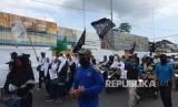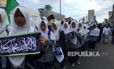 Umat Muslim di Tasikmalaya menggelar aksi bertema Dakwah Kalimat Tauhid on the Sreet di depan Masjid Agung Kota Tasikmalaya, Jawa Barat, Rabu (24/10). Aksi ini sebagai bentuk protes atas insiden pembakaran bendera tauhid di Garut. (FOTO : Republika/Eric Iskandarsjah Z)
