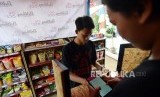 REPUBLIKA.CO.ID, JAKARTA -- Warga saat memilih produk yang akan dibeli di Rumah Warung (Ruwang) OK OCE di RPTRA Taman Sawo, Kebayoran Baru, Jakarta Selatan, Rabu (24/10).